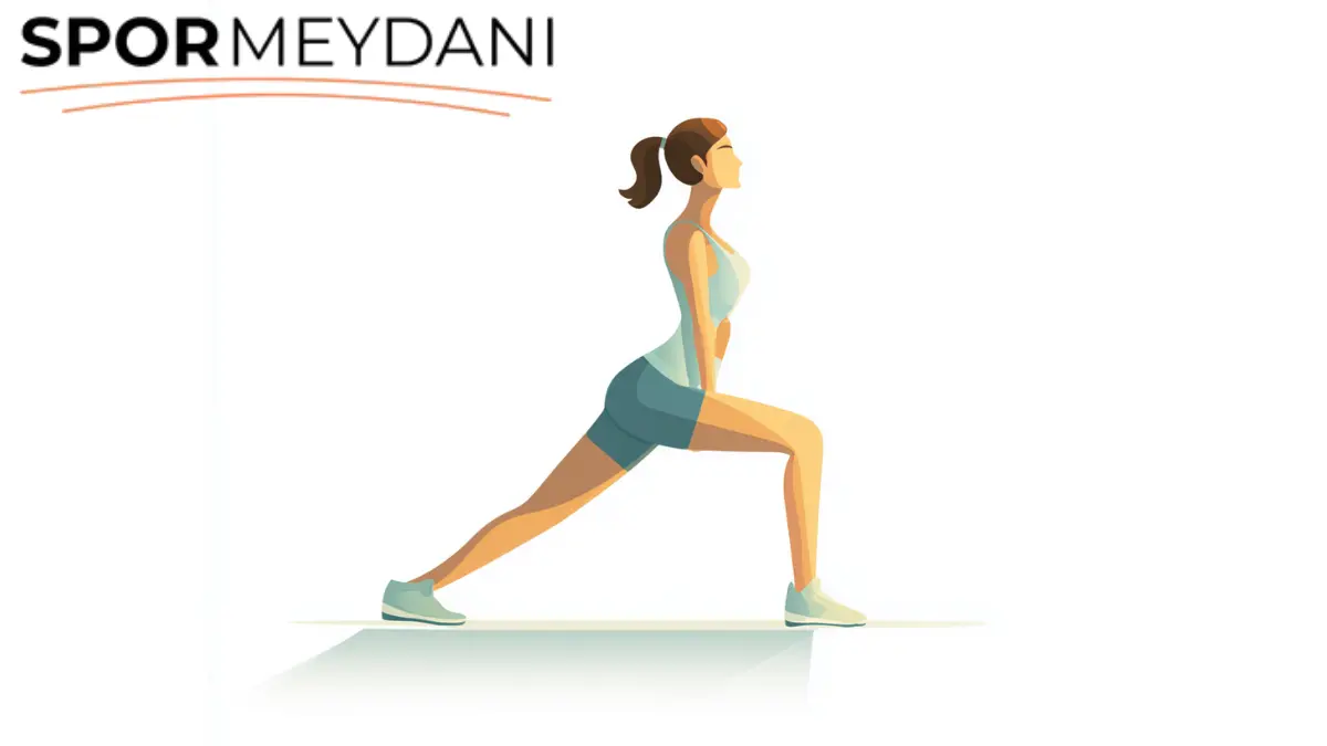 Uygulama: Lunge pozisyonuna geç, arka bacak diz yerde. Kalçayı öne doğru bastır.